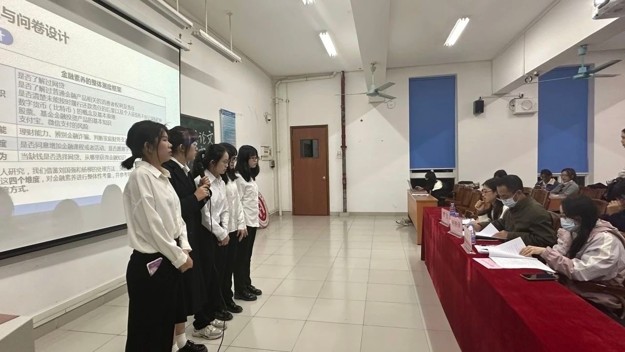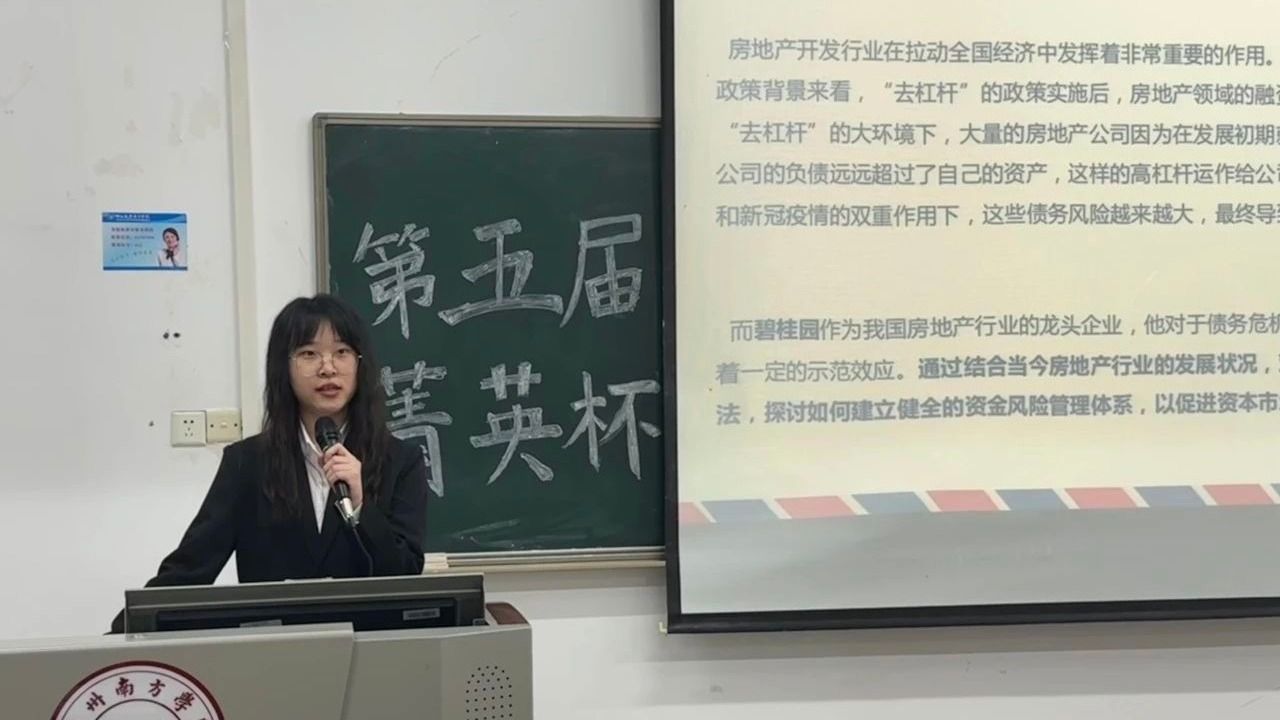 本次大赛分为“财会+金融”和“财会+互联网”两个赛道,各小组围绕当下热点话题将他们的研究课题分为研究目的及意义、设计思路及方法、研究内容及分析、创新点、预期结果的假设、研究进度规划六个板块,以PPT展示的形式上台汇报。