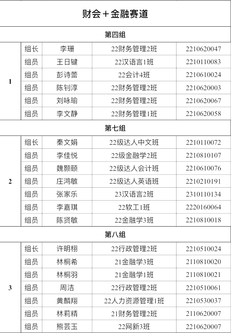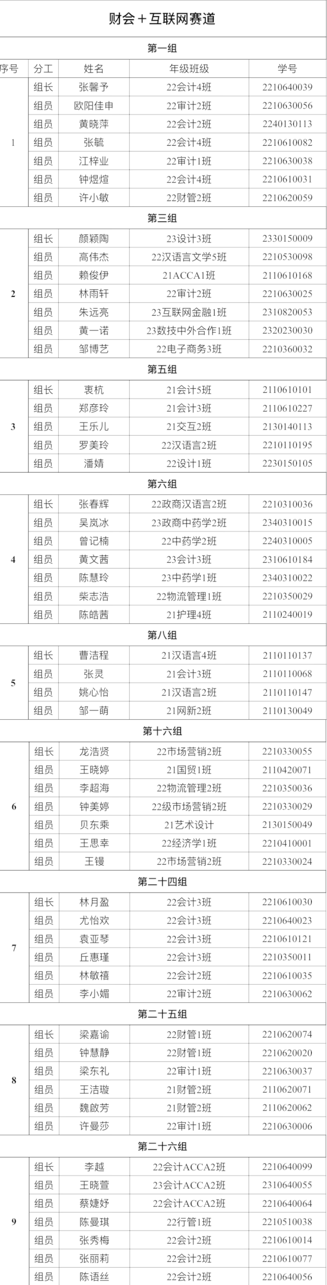财会+互联网:第1组,第3组,第5组,第6组,第8组,第16组,第24组,第25组,第26组。