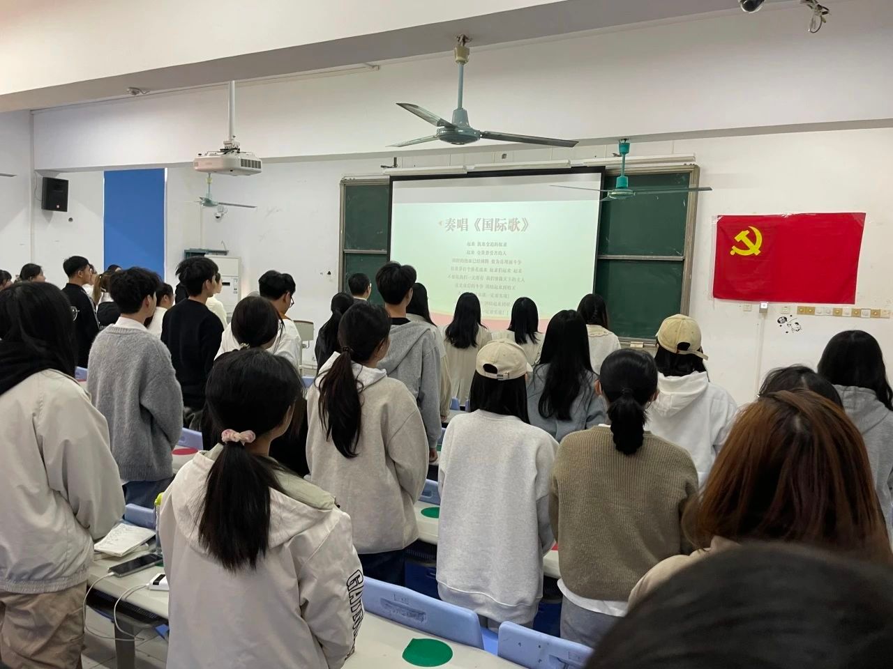 仪式最后,全体师生起立共唱《国际歌》。