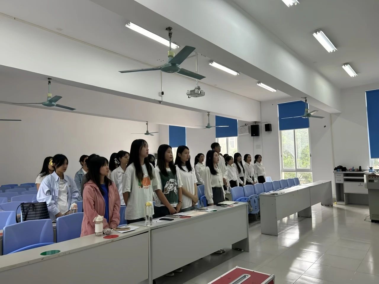大会伊始,全体起立,奏唱中华人民共和国国歌。本次大会在庄严的氛围中拉开帷幕。大会的第一项议程由主持人赖科同同志宣读本次会议实况,本次参会共有党员27人,其中正式党员13人,预备党员14人,今天实到会27人,请假0人。应到会具有选举权的党员人数超过应到会党员人数的4/5,符合大会到会人数要求,可以召开支部大会。