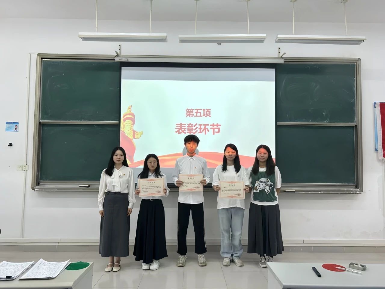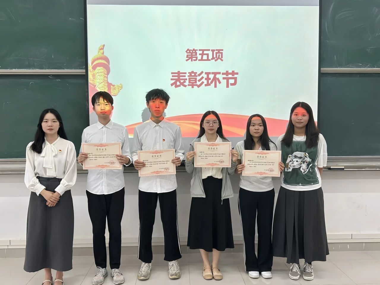 大会第五项议程:表彰环节。首先,表彰在2024年广州南方学院williamhill中国官网学生第二党支部暑期“百千万工程”突击队专项行动中朱文曦、蔡婉仪、黄馨仪、郑彦玲四位同志积极响应,勇于担当,荣获“支部优秀志愿队员”称号;接着是在支部 2024年春季学期支部工作中认真履职、勇于担当的王熠、欧健艳、殷瑞阳、赖科同四位同志,荣获“优秀党小组组长”称号;最后是在支部 2024年春季学期支部工作中秉持忠诚和热爱、积极参与支部各项活动的朱文曦、郑彦玲、赖科同三位同志,荣获“支部优秀先进个人”称号的同志。