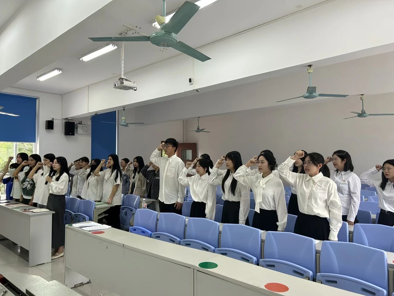大会的第四项议程:宣读表决情况。经过与会正式党员的无记名投票表决,同意接收发展对象罗庆霜等5名同志顺利转为预备党员和预备党员郑彦玲等6名同志顺利转为中共正式党员。在支部书记申雨弦同志带领下,全体党员同志肃然起立,面向党旗庄严宣誓。