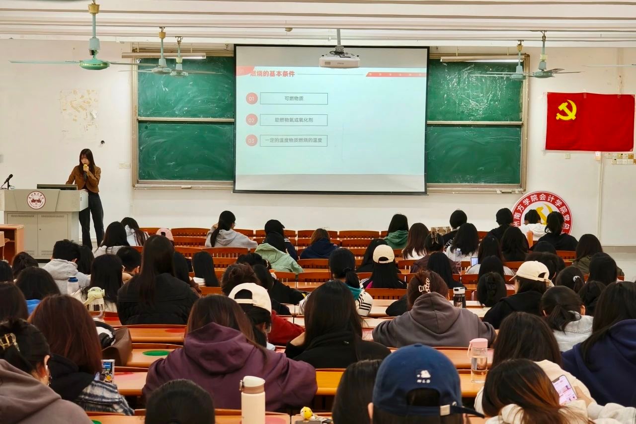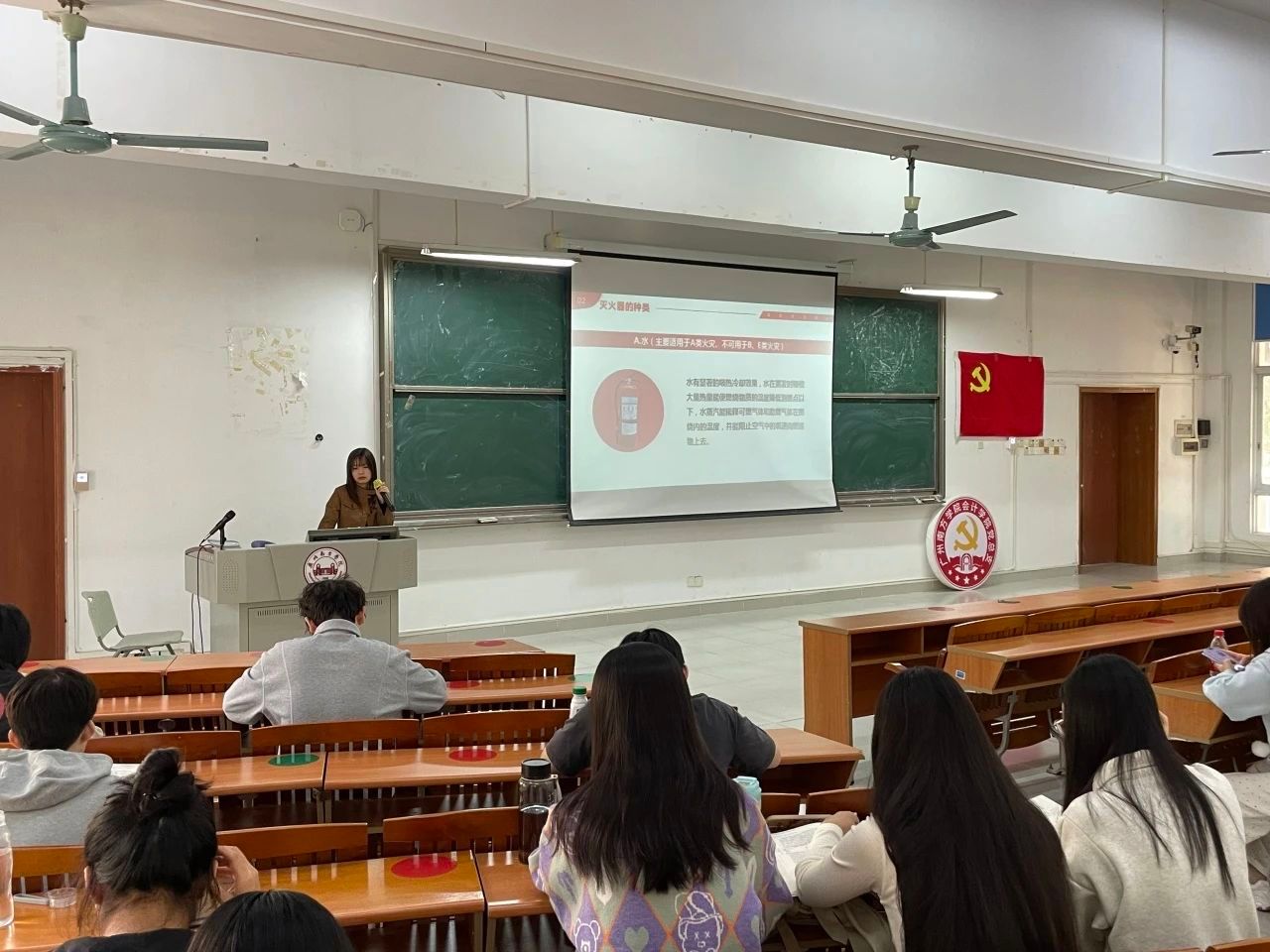 为进一步普及安全知识,增强同学们的安全意识,提高防范安全事故的能力。11月22日16时,williamhill中国官网教工党支部在5教205课室开展以“消防反诈两手抓 筑牢平安防护线”为主题的宣讲活动,由党员教师严志华老师授课,支部其他党员教师维持会场秩序、派发宣传单。本次宣讲活动覆盖全院所有班级的班长以及各班学生代表,共计300名学生参加。