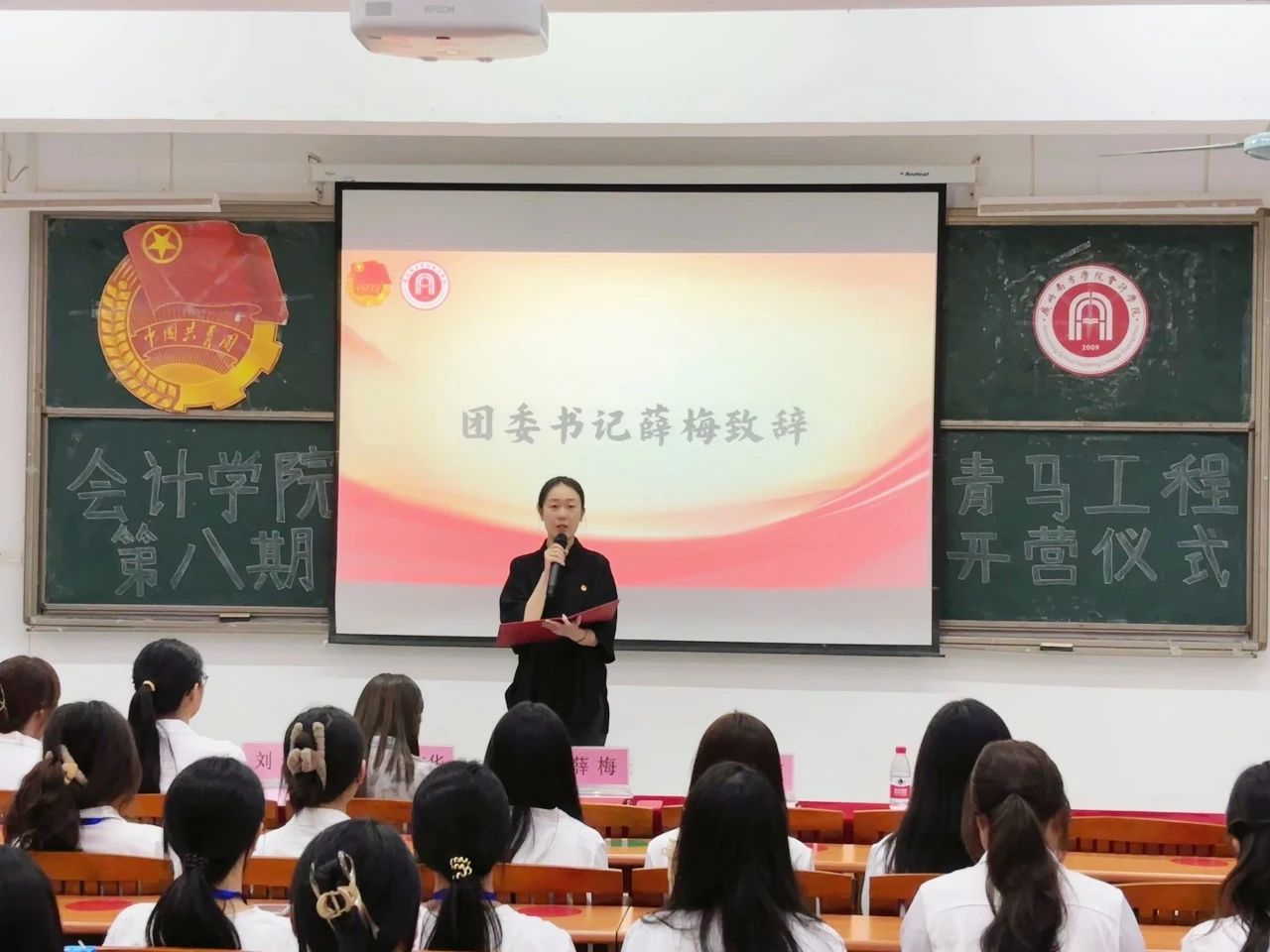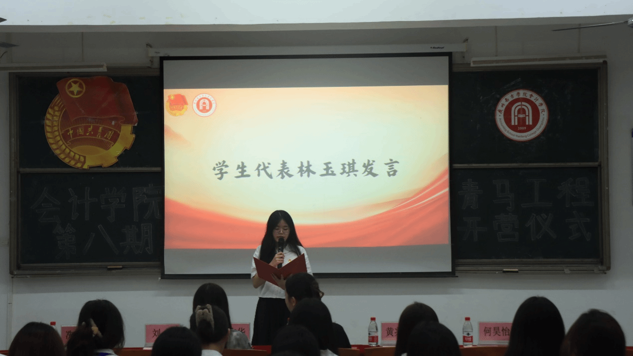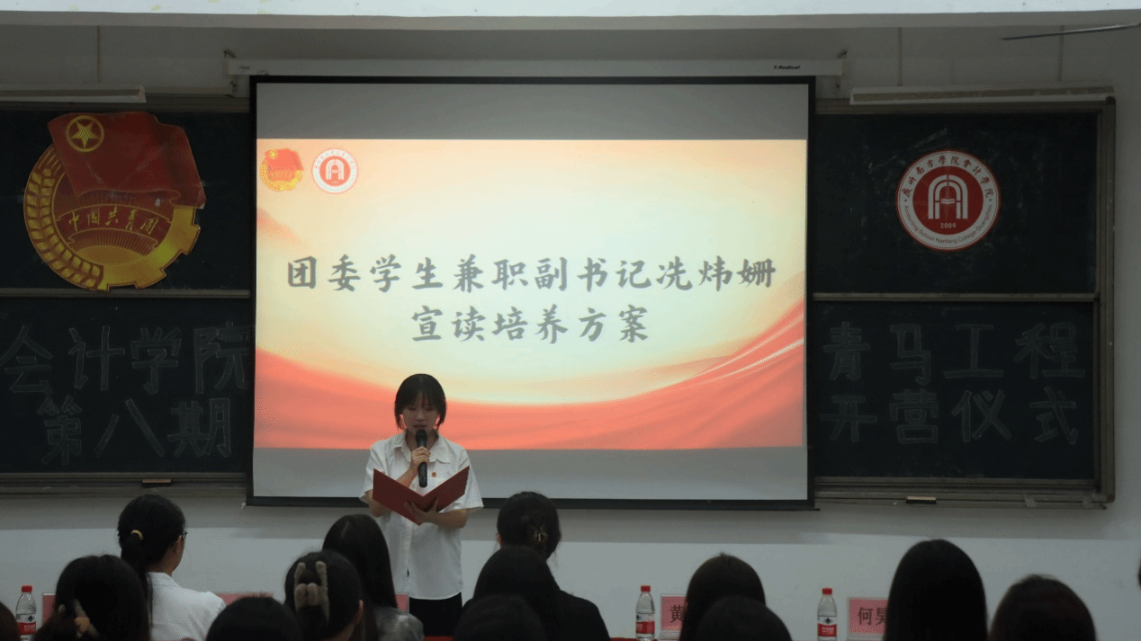 紧接着,冼炜姗同学宣读第八期青马工程培养方案,她介绍了必修课程、选修课程、请假流程与考核制度,并着重强调,青马工程的每位学员都应秉持高度的组织性与纪律性,要通过系统学习与实践锻炼,不断提升个人能力与素质。