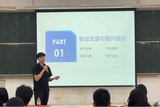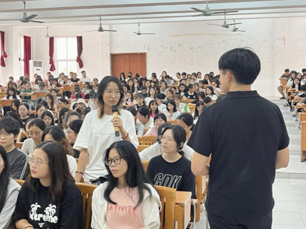 在最后互动环节中,同学们踊跃提问,包括学业规划、职业选择、行业发展趋势等多个方面。黄杰雄校友耐心地一一解答,为同学们提供了宝贵的建议和指导。