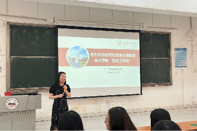 讲座伊始,邓晓文主任对校友黄杰雄的到来表示热烈的欢迎,她向同学们介绍了其在工作领域中所获得的成就,也强调了他丰富的工作经验对在校学生的职业生涯规划具有重要的指导意义。