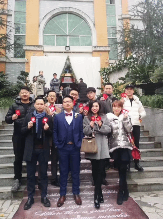 参加好友婚礼的何权霖师兄(前排左一)