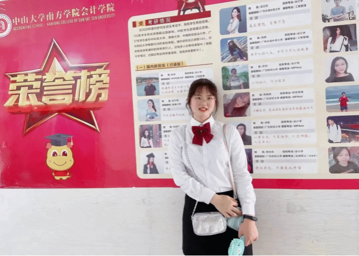 柳晓倩:2020年毕业于广州南方学院财务管理专业,同年考上广东财经大学会计专业的研究生,现在在一家国企工作。