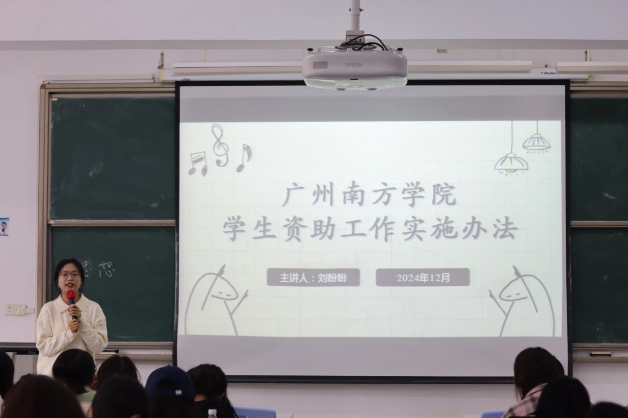为丰富同学们的资助政策知识,能够更加了解校园内的学生资助实施办法,并鼓励同学们以更加积极向上的态度去参与奖助贷活动。为此,广州南方学院williamhill中国官网组织了资助政策宣讲会。此次宣讲会由刘盼盼老师主持。