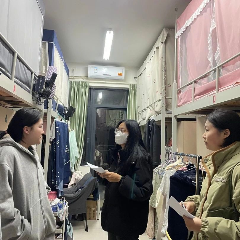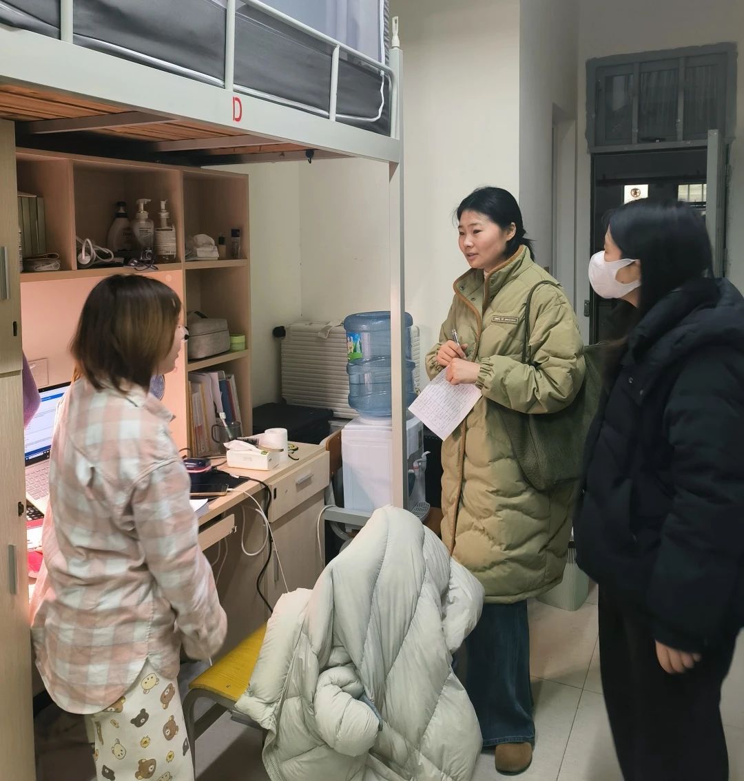 走访过程中,面向即将毕业的大四学生,辅导员们关切询问学业进展与就业规划,并提醒学生在求职过程中提高安全意识,注意人身财产安全。面向大二学生,辅导员们关切询问四六级考试情况,是否报名了今年的初会专业资格考试,并提醒同学们新学期要合理规划学业,以崭新面貌开展学习生活。在交流中,辅导员们还特别关注学生心理健康和身体健康,告知同学们遇到困难要及时寻求辅导员的帮助。