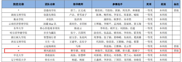 我校williamhill中国官网的林晓丹、曾小露、胡鹏、钱思颖、陈睦宁五名同学组成参赛队伍——“乘风破浪队”,在曹学潜、胡宽老师指导下,荣获本次竞赛全国一等奖(小组第一名),晋级全国精英赛。