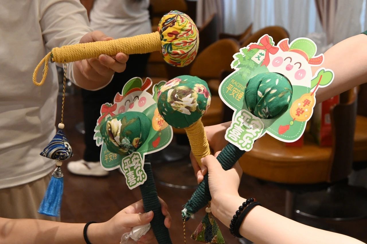 本次活动设置了茶歇和抽奖环节。抽奖现场气氛热烈,香囊、挂饰、手工皂等小礼品传递着端午祝福。茶歇区里,大家品尝点心、畅聊趣事,在轻松的氛围中共享传统文化的美好时光。