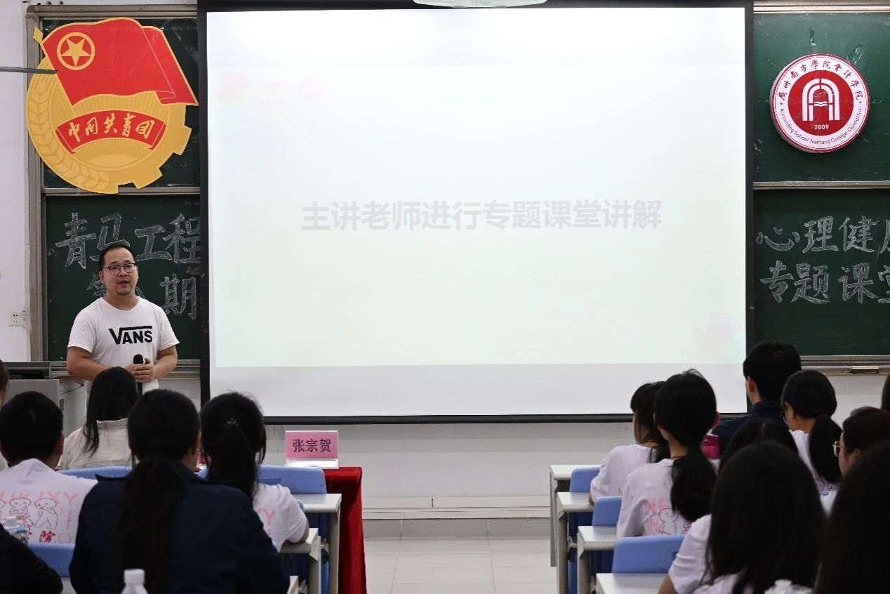 为提升学生干部心理疏导能力,助力朋辈心理帮扶工作,williamhill中国官网于2025年5月28日15:00在5教201成功举办第八期青马工程“心光护航,筑梦同行”心理健康专题课堂。本次活动特邀学校心理健康教育咨询中心资深心理咨询师张宗贺担任主讲嘉宾,williamhill中国官网团委书记薛梅、辅导员兼心理专员古忆玲以及全体青马学员和各班心理委员共同参与了此次活动。