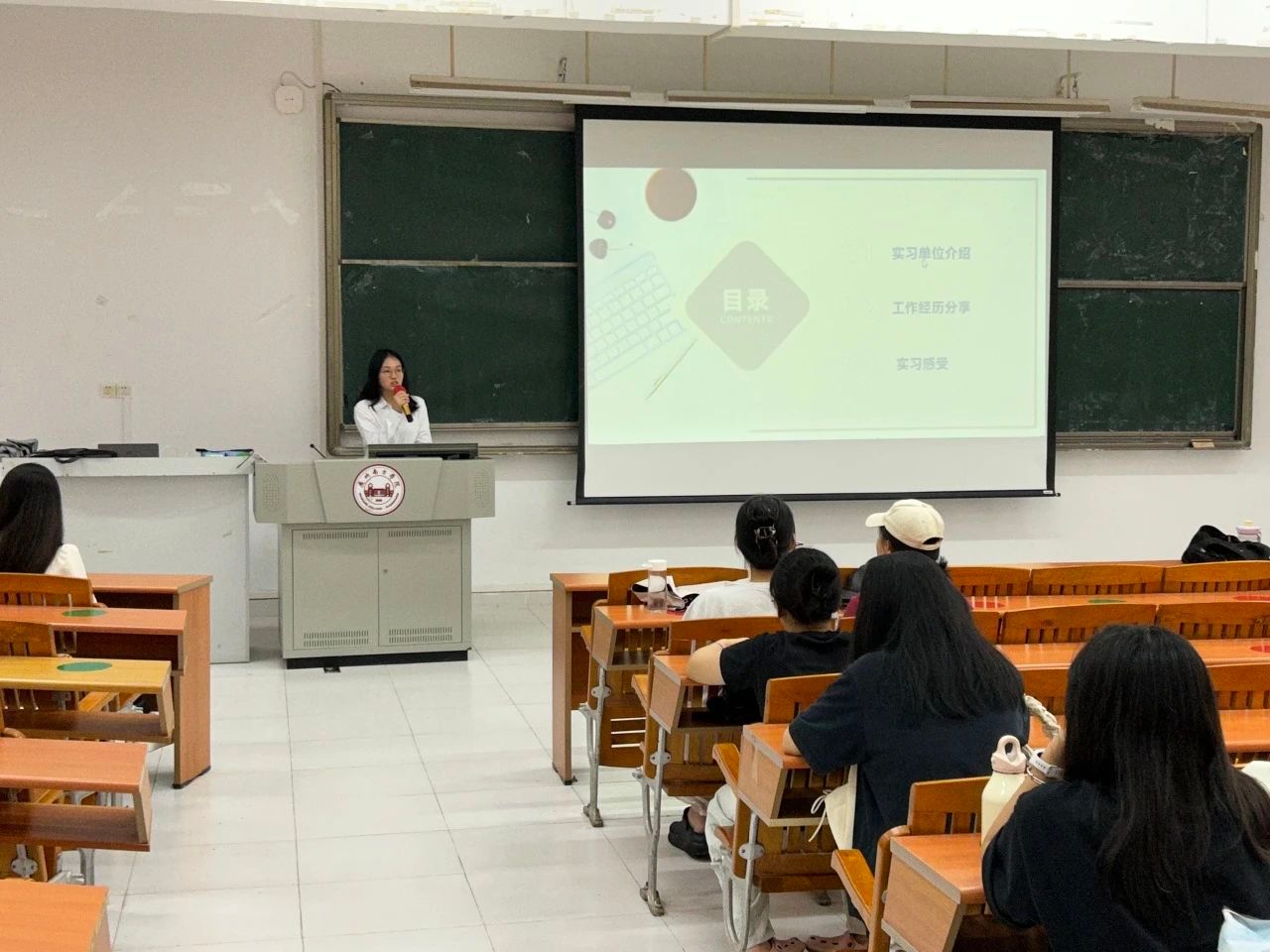 卢芊曼同学注重以自身项目实践为例,讲述了如何将课堂知识应用于实际实习工作中。她鼓励同学们在实习中要敢于尝试,主动承担更多项目任务,通过项目实践来提升专业能力,但要注意遇到问题及时向带教老师和同事请教,不断总结解决问题的方法,更好的实现知识与技能的双向提升。