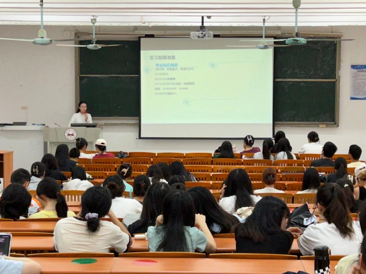 其次,辅导员陈静菲老师指出,实习是财会专业学生从理论学习迈向实际工作的重要过渡阶段,是检验所学知识、提升实践能力和职业素养的关键时期。陈静菲老师希望所有的同学都能够珍惜专业实习的机会,虚心学习,勤于思考,善于总结,以积极的态度和饱满的热情投入到实习工作中,通过实习不断提升自己的专业能力和综合素质。