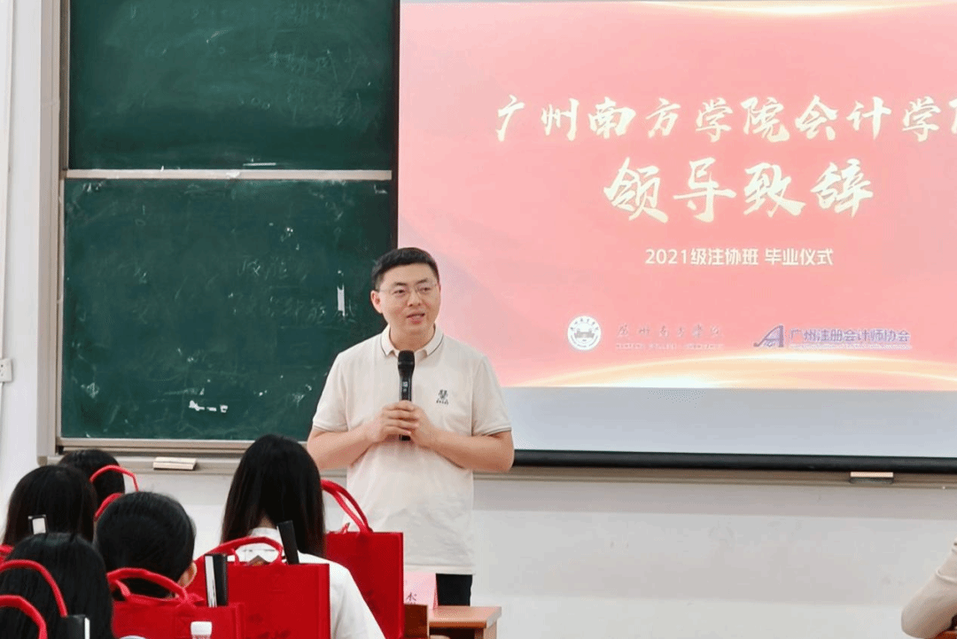 随后,董成杰副院长上台致辞。他对毕业生们四年来的努力与成长给予了高度肯定,同时对同学们寄予了殷切期望,希望同学们能将注协班培养的专业素养和职业精神融入未来的人生旅程,在追求卓越的同时,永远铭记母校的培育之恩。
