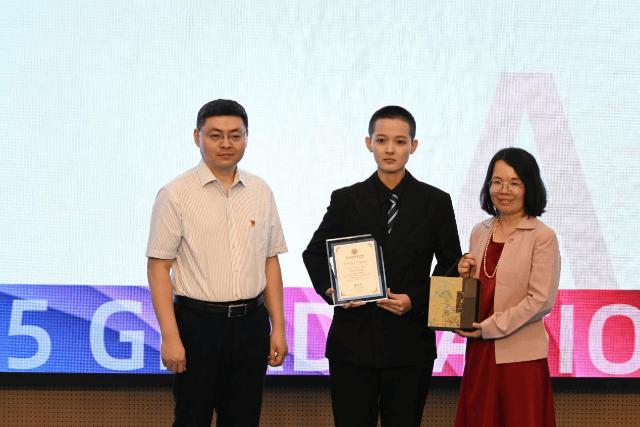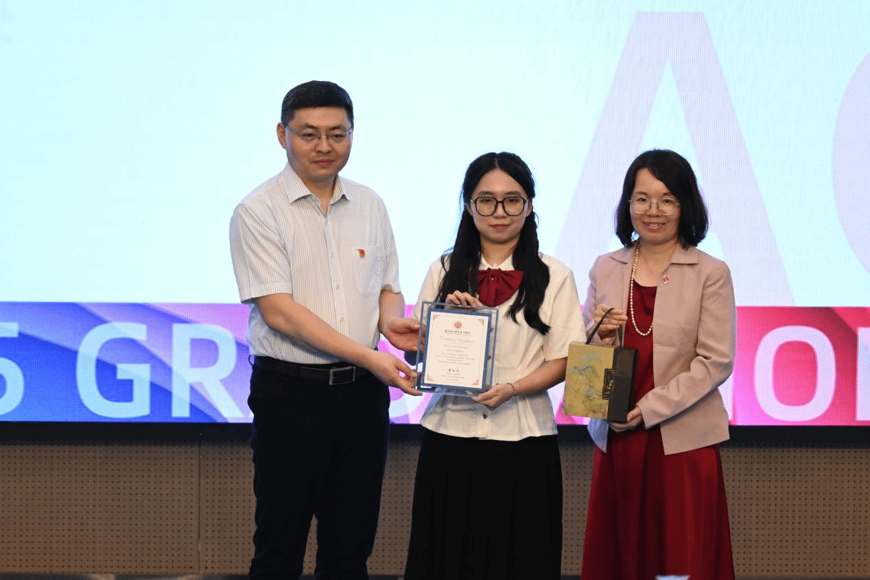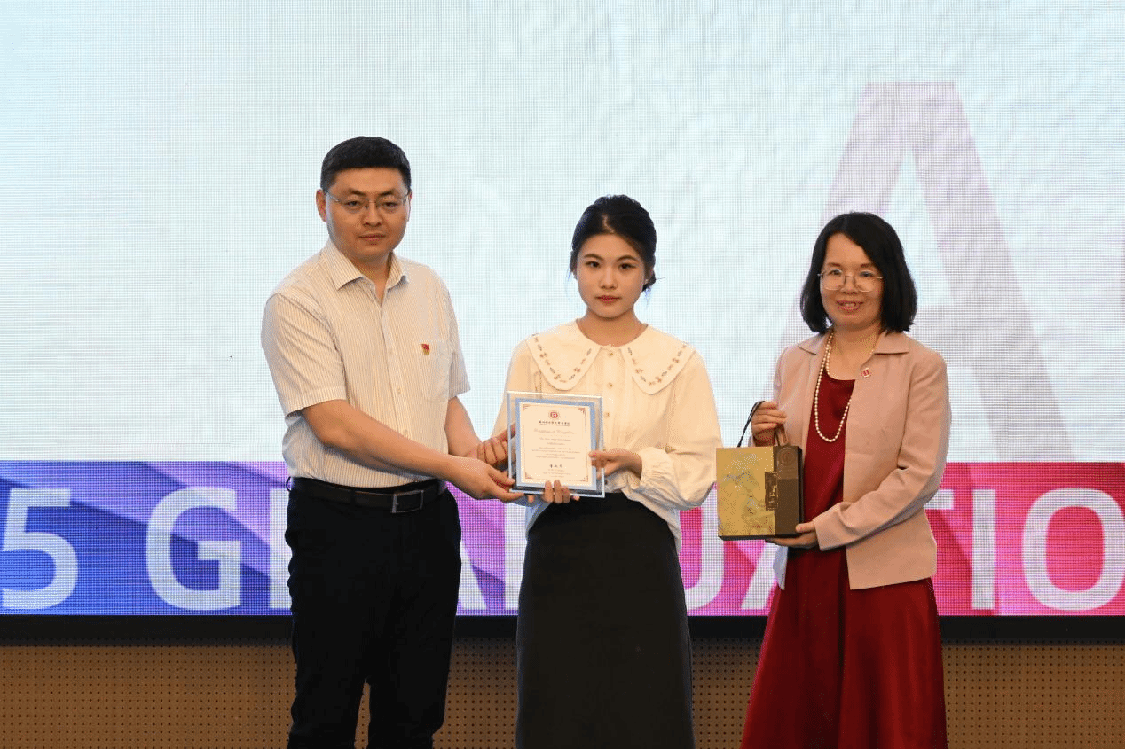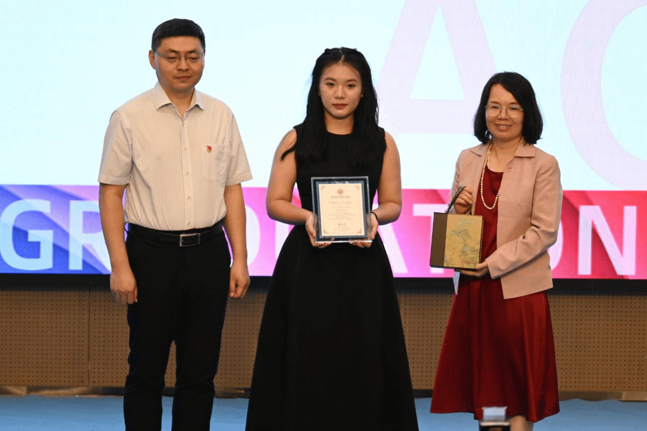 典礼还特别表彰了ACCA优秀毕业生陈芯妍,陈芯妍同学作为21级ACCA方向班第一位完成ACCA全部课程考试的学生,同时考取了雅思7.5的高分,并斩获了包括墨尔本大学在内的多所海外名校Offer。董成杰副院长和谭颖敏总监共同为其颁发荣誉证书及5000元奖学金,以此勉励同学们再接再厉。
