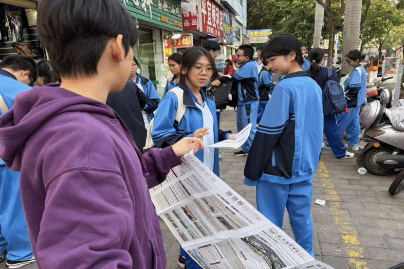放学时分的校园热闹非凡,三位学子主动向前,向来往的学弟学妹递上宣传资料,围绕广州南方学院展开细致宣讲。他们耐心讲解学校坐落于从化温泉镇的优美校园环境,详细介绍学校的优势专业、丰富社团活动,以及专业特色、就业前景等核心信息,用真切的就读体验为学弟学妹勾勒出鲜活的大学生活图景。