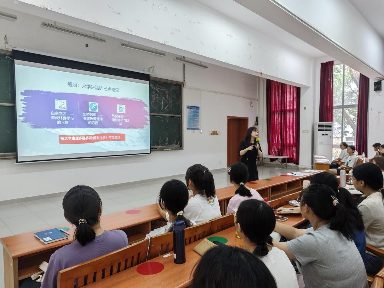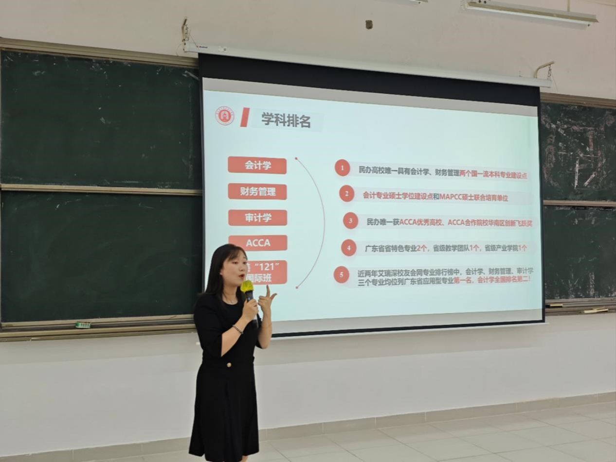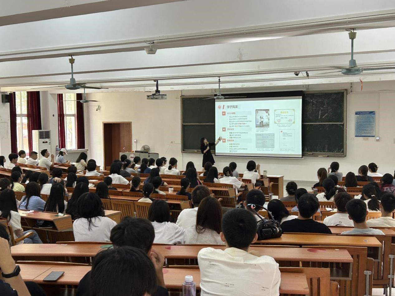 在学院师资科研方面,王家碧老师帮助同学们了解了目前学院的师资力量和突出的科研实力,明显领先于同类院校的丰富资源为学生的专业发展提供了强有力的支持。接着,王家碧老师由浅入深地介绍了会计学专业的课程体系、专业课设置以及实践教学体系,目的是让同学们对今后的学习有深入地了解和目标。在谈到未来规划时,她为同学们进行了岗位梳理,并鼓励大家大胆尝试,提前明确和规划未来就业方向,平衡好学习与生活,在提升专业能力的同时丰富自己的大学生活,勇敢追梦,不负韶华。