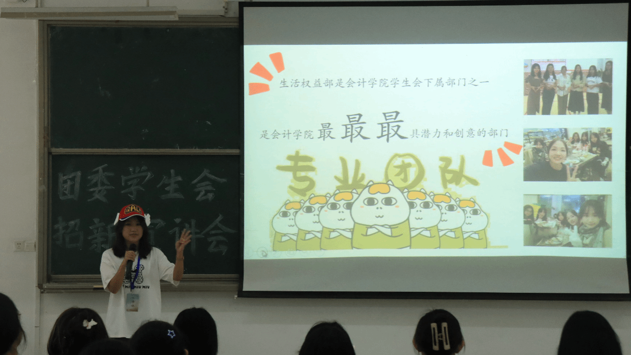 学长学姐们代表各自的部门,以生动的语言和精美的 PPT 详细展示了本部门的工作内容与特色活动。不仅有身怀绝技的学长学姐们带来超燃的歌舞表演,还有惊喜的发礼物环节,每个部门都展现出独特的魅力与活力。