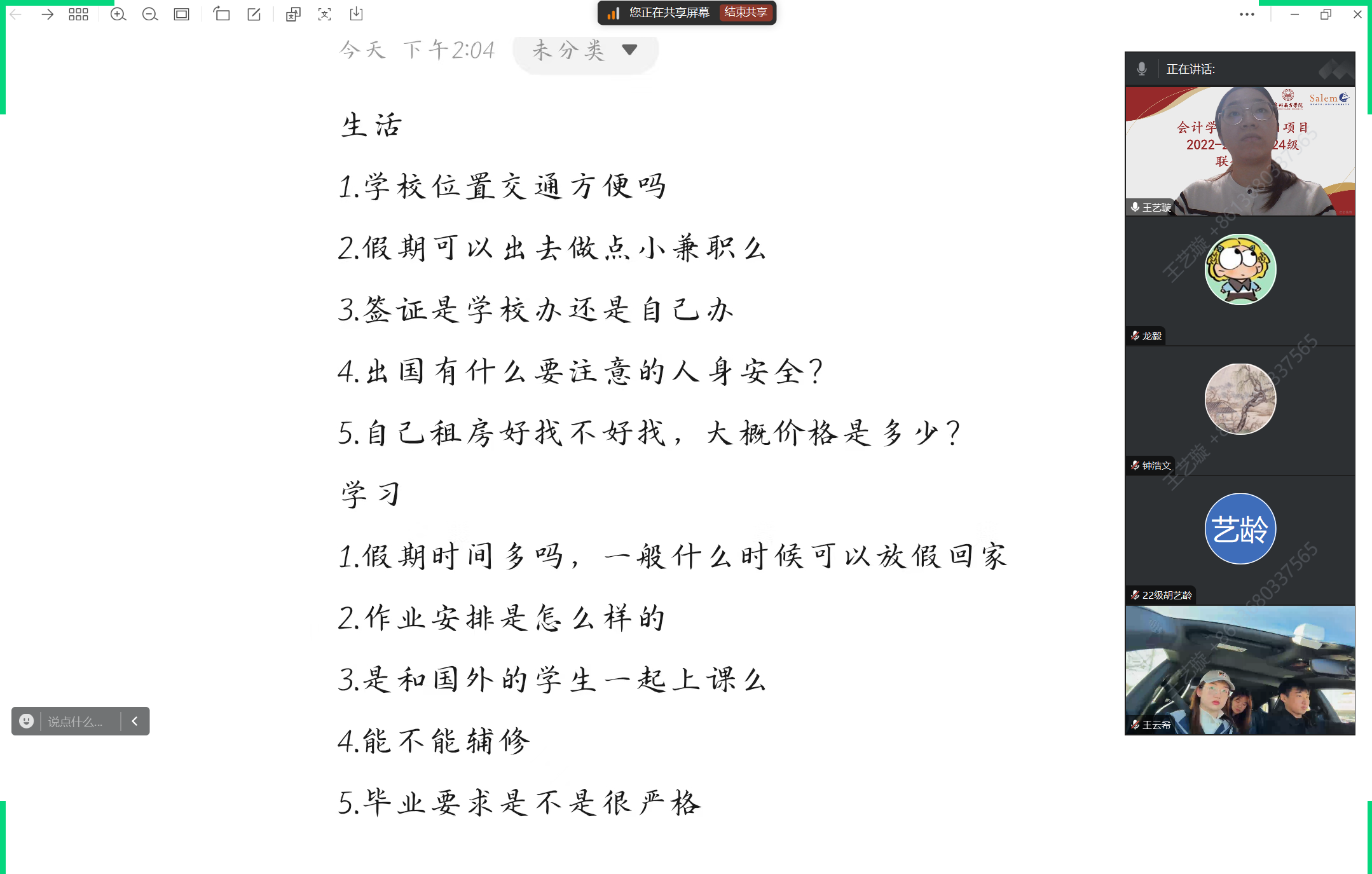 这场线上班会,不仅是一次简单的集会,更是一次心灵的交流和经验的碰撞。它让不同年级的同学们有机会相互了解,共同成长。我们期待会计学专业国际班的同学们在未来的日子里,能够继续保持这种开放的心态和积极的交流,共同书写属于他们的辉煌篇章。