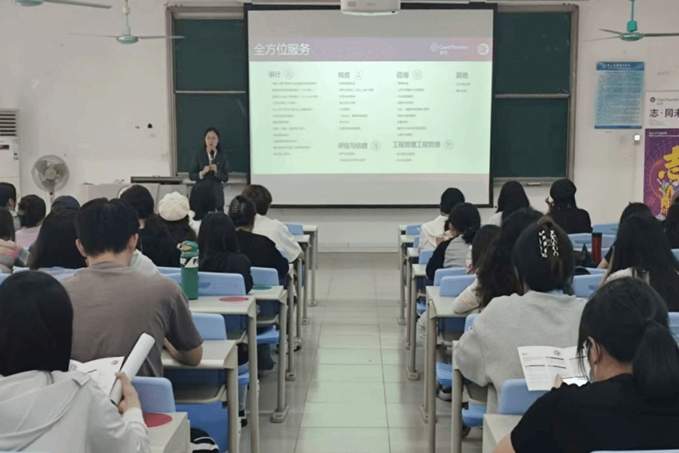 宣讲会上,人与文化总监陈吉利向同学们首先介绍了事务所的整体发展、企业文化和业务范畴,展示了致同一直以来致力于为世界各地独立提供审计、税务、咨询、评估与估值在内的一站式全球化专业服务,拥有全球的规模和服务能力,且具备较大国际化发展空间。