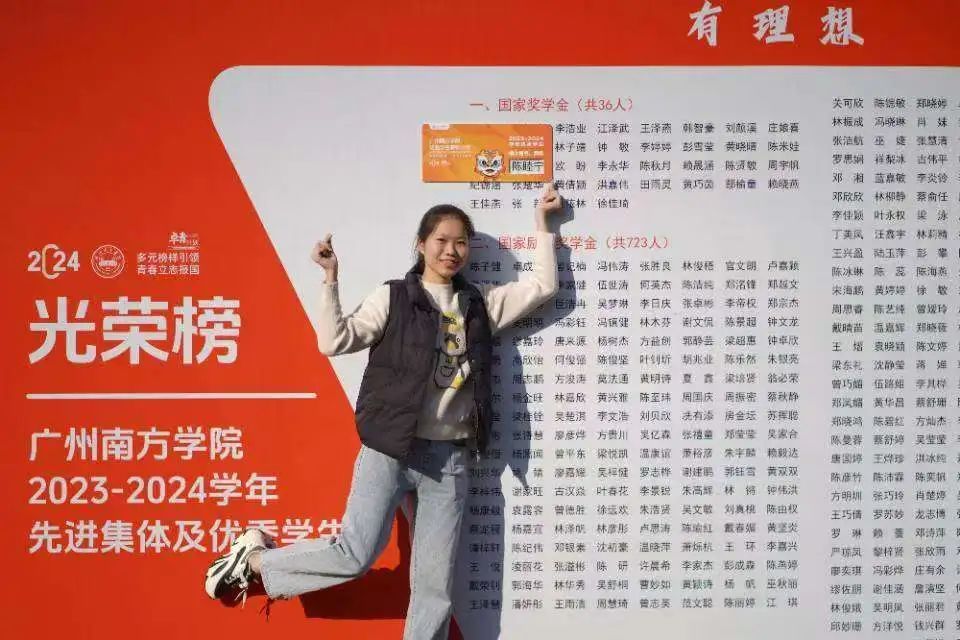 她向内求索,扎实学业基础。绩点连续两年排名第一,斩获国家奖学金、校级优秀学生奖学金。积极参与学科竞赛,屡获佳绩,包括多项校级奖项以及特级比赛全国总决赛一等奖。在班级事务中,作为学习委员,耐心为同学答疑解惑,认真负责。在广州南方学院大学英语教学中心任学生助理,工作效率显著提升,培养了合作与保密意识,态度严谨。