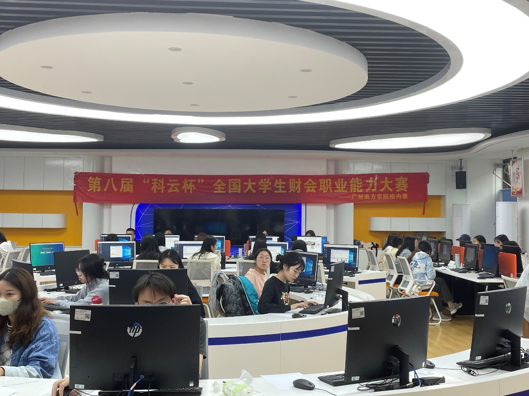 2023年10月22日,第八届“科云杯”全国大学生财会职业能力大赛广州南方学院校内赛在C1实验楼举办。