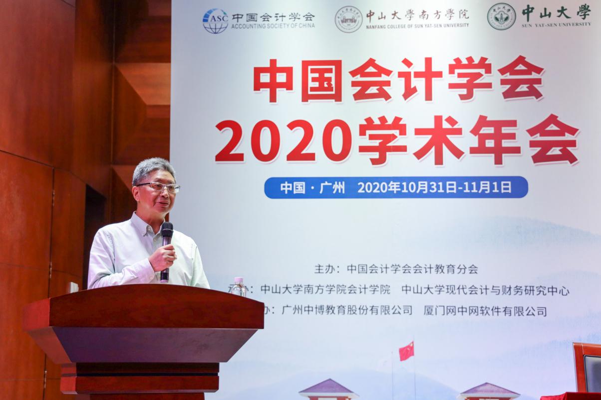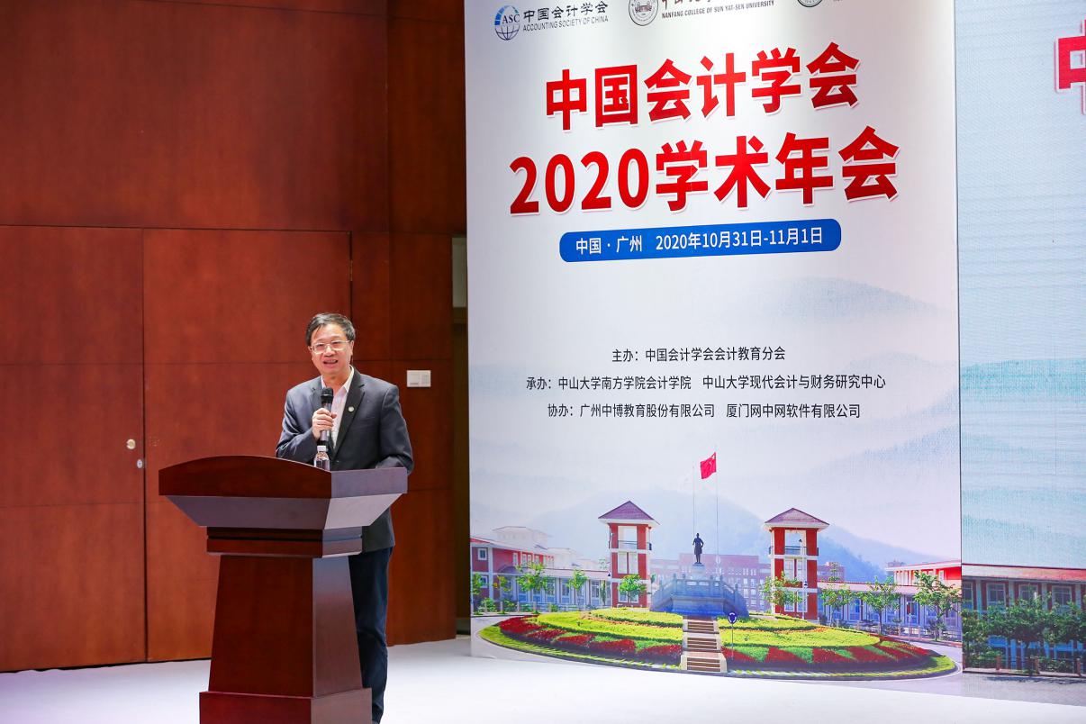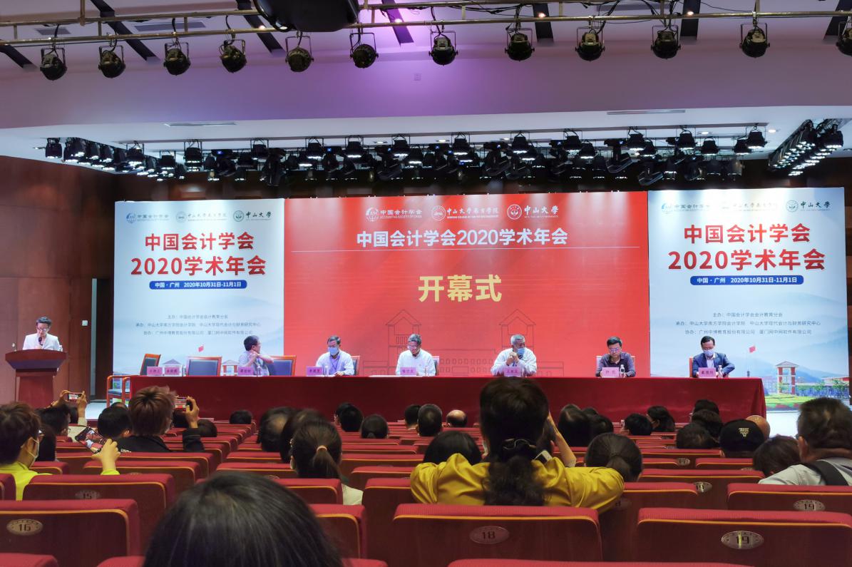 10月31日上午8:30,由中国会计学会会计教育分会主办、中山大学南方学院williamhill中国官网和中山大学现代会计与财务研究中心承办、广州中博教育股份有限公司和厦门网中网软件公司协办的“中国会计学会2020学术年会”采用“线上+线下”的方式在中山大学南方学院隆重举行。线上参会的领导、嘉宾有财政部会计司副司长、中国会计学会秘书长吴祥云,中国会计学会常务副秘书长、《会计研究》主编周守华,中国会计学会副秘书长田志心,中国会计学会《会计研究》编辑部主任刘国强,中国会计学会培训部主任夏烨以及2047名注册代表;莅临现场的领导、嘉宾有财政部财科院原副院长、我国著名财务会计专家王世定,中国会计学会副会长、厦门大学教授李建发,中国会计学会会计教育分会会长、厦门大学/哈尔滨工业大学(深圳)教授曲晓辉,中国会计学会副会长、中国会计学会会计教育分会候任会长、中国人民大学教授戴德明,中国会计学会会计教育分会前任会长、中山大学教授谭劲松以及全国高等院校、科研院所的专家学者100余人。中山大学南方学院校长喻世友教授出席并致辞,williamhill中国官网执行院长卫建国和副院长张俊生、董成杰、张媛等全体教师和部分学生也参加了本次年会。