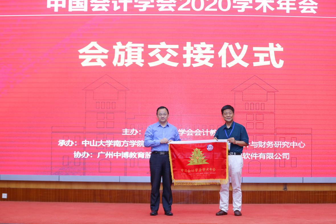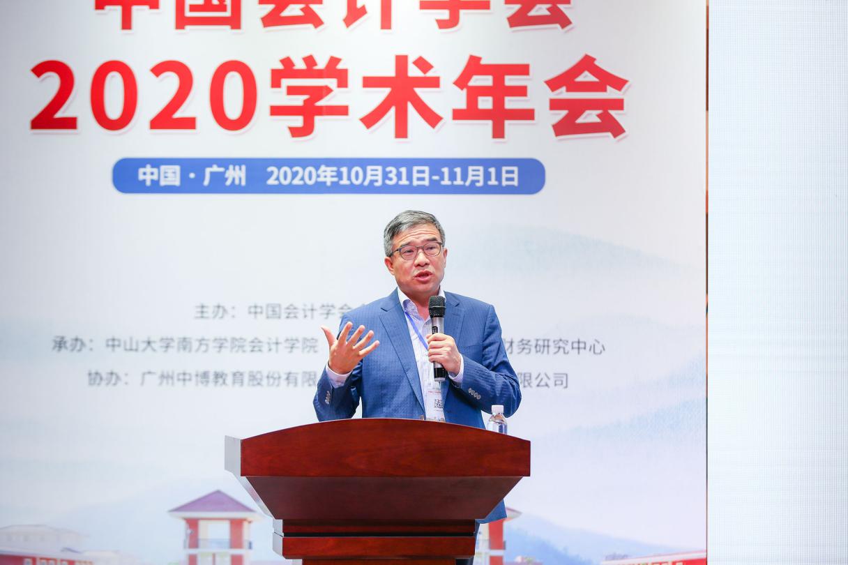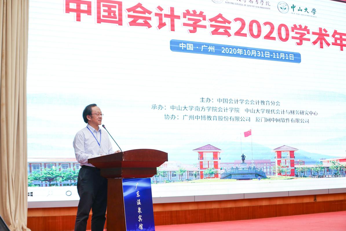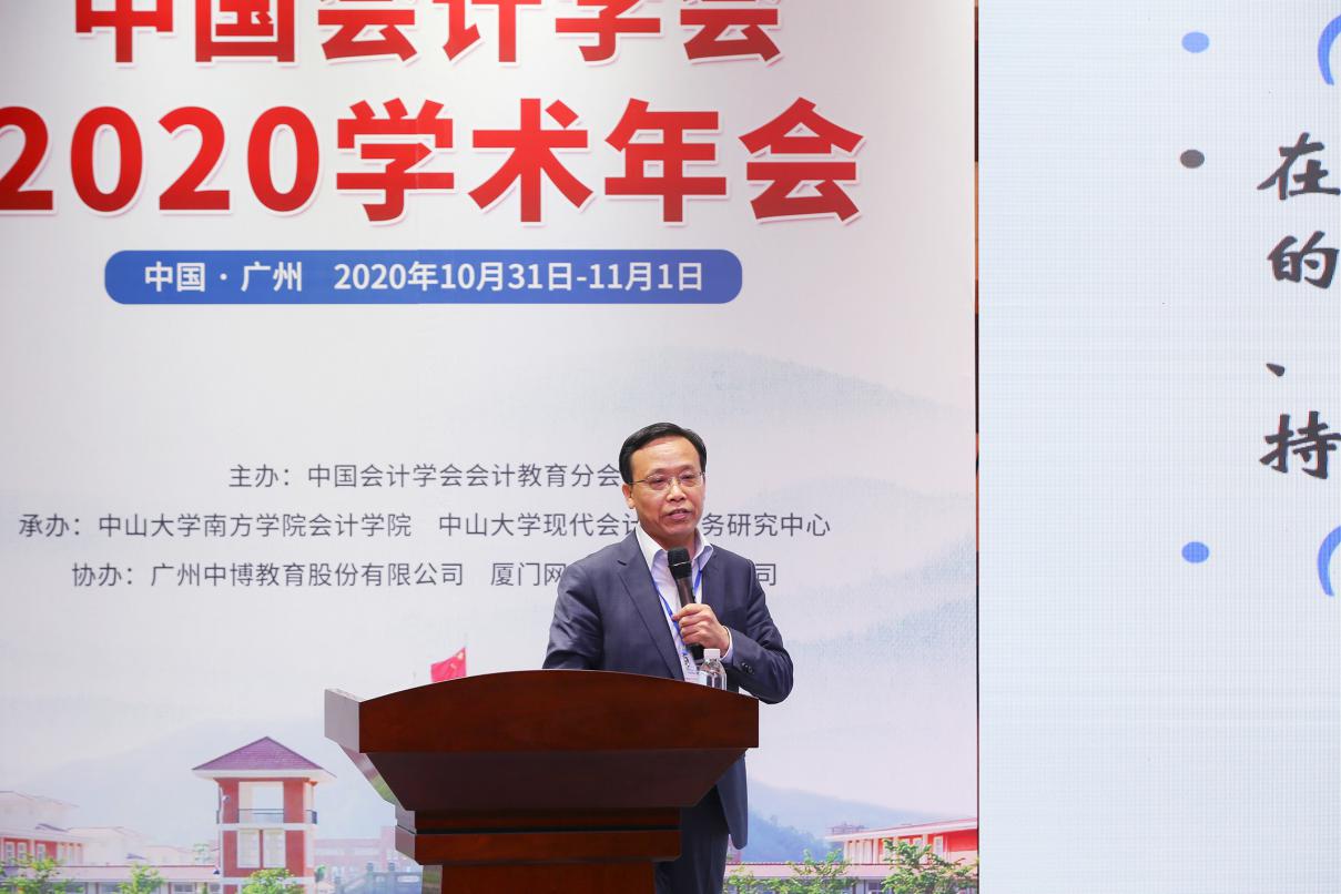 10月31日上午8:30,由中国会计学会会计教育分会主办、中山大学南方学院williamhill中国官网和中山大学现代会计与财务研究中心承办、广州中博教育股份有限公司和厦门网中网软件公司协办的“中国会计学会2020学术年会”采用“线上+线下”的方式在中山大学南方学院隆重举行。线上参会的领导、嘉宾有财政部会计司副司长、中国会计学会秘书长吴祥云,中国会计学会常务副秘书长、《会计研究》主编周守华,中国会计学会副秘书长田志心,中国会计学会《会计研究》编辑部主任刘国强,中国会计学会培训部主任夏烨以及2047名注册代表;莅临现场的领导、嘉宾有财政部财科院原副院长、我国著名财务会计专家王世定,中国会计学会副会长、厦门大学教授李建发,中国会计学会会计教育分会会长、厦门大学/哈尔滨工业大学(深圳)教授曲晓辉,中国会计学会副会长、中国会计学会会计教育分会候任会长、中国人民大学教授戴德明,中国会计学会会计教育分会前任会长、中山大学教授谭劲松以及全国高等院校、科研院所的专家学者100余人。中山大学南方学院校长喻世友教授出席并致辞,williamhill中国官网执行院长卫建国和副院长张俊生、董成杰、张媛等全体教师和部分学生也参加了本次年会。