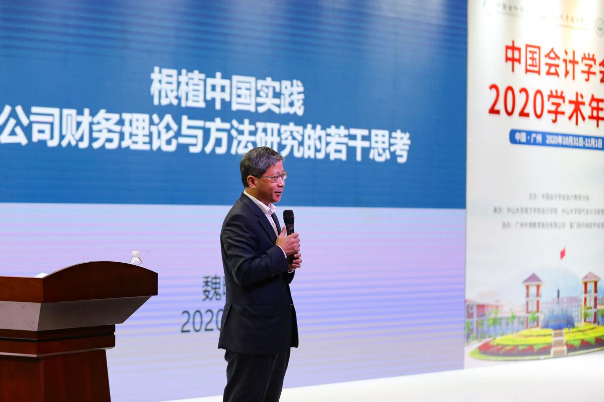 主题报告一是由广州大学校长、中山大学教授魏明海作的《根植中国实践的公司财务理论与方法若干思考》,从报告人自己投身公司财务理论与方法的研究体会出发,指出目前会计学术界的研究范式主要是寻找财务变量与其他变量之间的关联研究,但对核心财务问题并未深挖,现有研究存在着关联模型、小数定律、内卷化、攀爬、错配等陷阱,值得深入思考与探究。