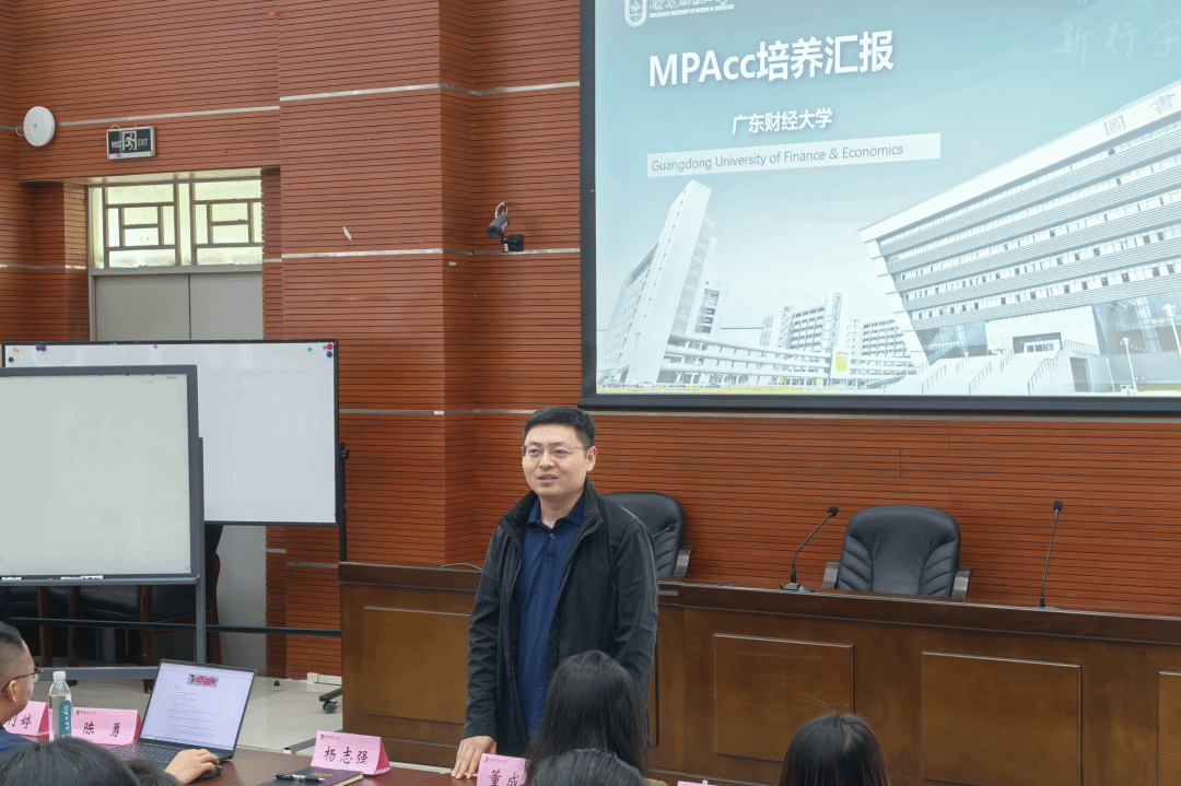 会议的第一项议程,杨志强副院长详细介绍了广东财经大学MPAcc研究生学位点的建设情况、办学目标和特色、基本条件以及人才培养方案等内容。