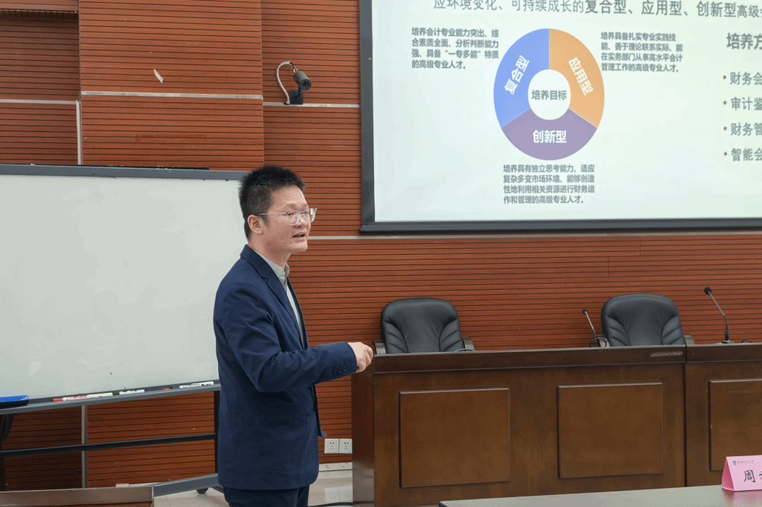 接着,陈勇博士为大家介绍了会计学学硕、专硕研究生的培养方案。他从课程设置、教学模式、实践环节等多个方面进行了详细阐述,并分享了一些成功的培养案例。
