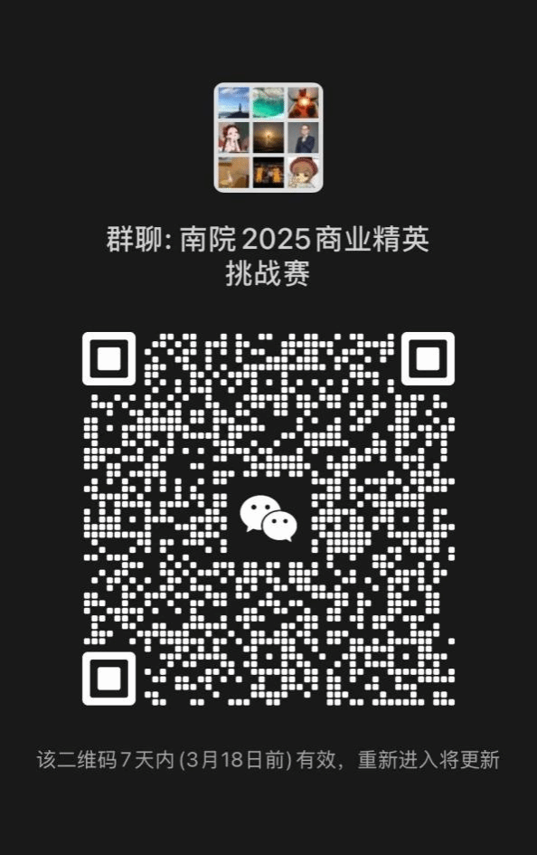 1、参赛选手进入文后赛事官方链接,填写相关信息,报名校内知识赛。同时扫描文后微信群二维码进高校商业精英挑战赛微信通知群。
