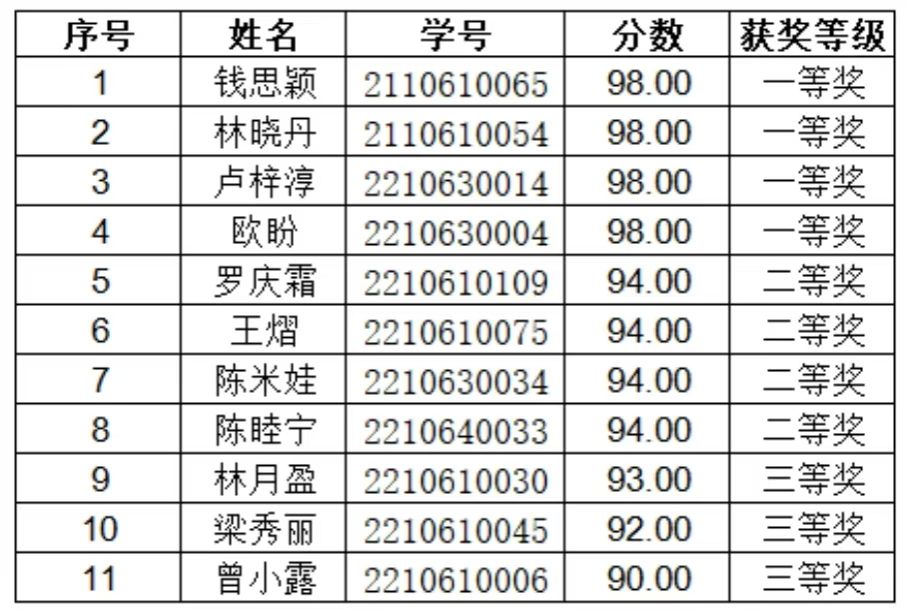截止至 2024年4月11日,williamhill中国官网共有22名同学参与知识赛,williamhill中国官网共有21名同学获得名次,其中一等奖4名(并列),二等奖4名(并列),三等奖3名。获奖名单公布如下(排名不分先后)。
