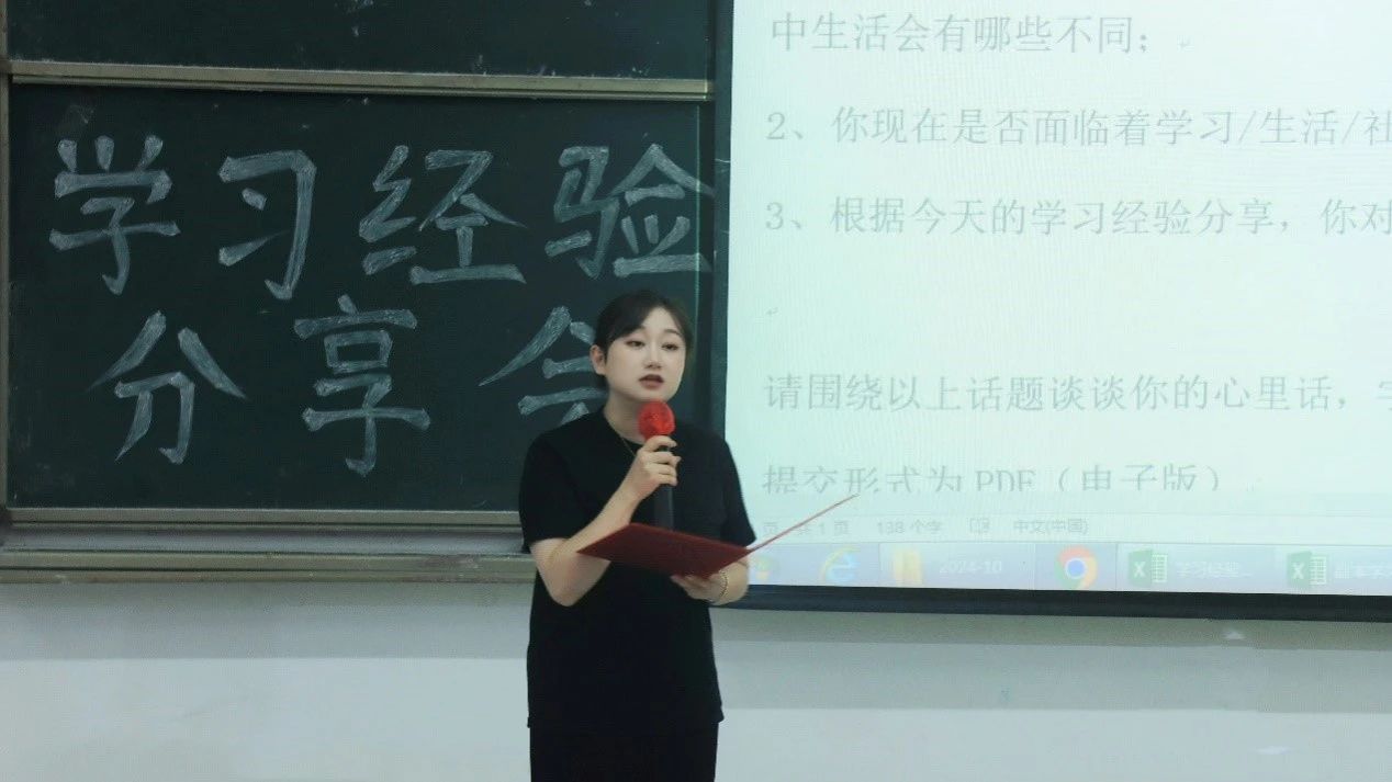 会议伊始,王家碧老师发表致辞。她开宗明义,为大家点明了本次分享会的核心内容:大一新生现阶段面临的困难及未来四年的学习规划。她分享了三点经验:一是在专业课程学习上调整状态,会计学实操性强,应多做题、多思考、多提问,组建学习小组,营造良好氛围,共同进步。二是积极参加社会实践活动与竞赛,充实大学生活。三是培养良好生活习惯,学会控制自己,切勿沉迷手机。最后,她引用了“未来只有特权阶级才能进行数字戒断,而80%的底层阶级都被绑定在智能手机上,持久的注意力将会变得稀缺”这句话来告诫大家,只有合理利用数字工具,避免被其奴役,才能迈向更加充实和成功的未来。