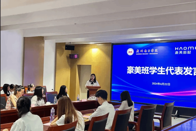 随后,“豪美班”班主任黄晓珊老师从班级成立情况、课程共建、实习基地共建以及就业指导等方面,全面总结了“豪美班”组建以来开展的各项联合培养活动以及取得的成效。