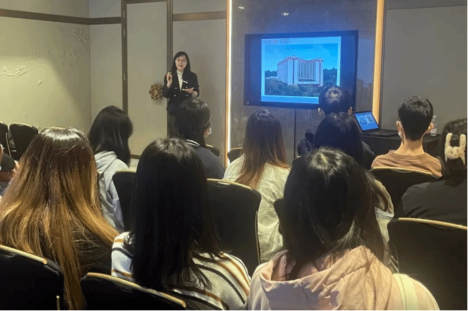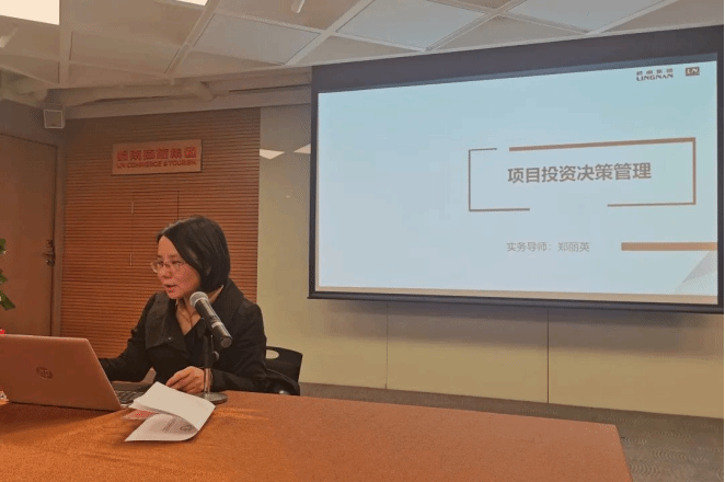 参观结束后,同学们前往会议厅,聆听由岭南集团财务管理部总监郑丽英老师带来的《项目投资决策管理》专题讲座。