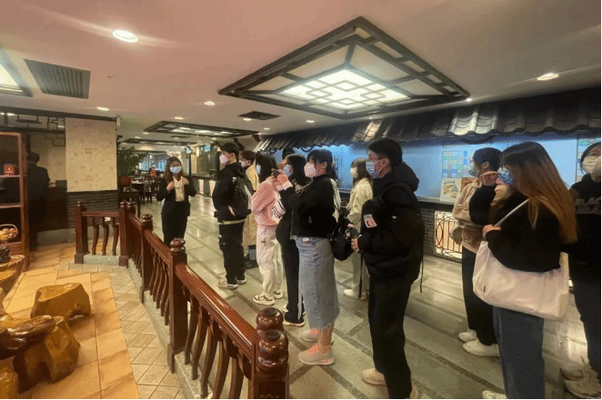 随后,同学们分成两组,在酒店工作人员的带领下依次前往酒店内的丽廊餐厅、四季厅、食街、马天尼吧、健康中心以及创享公寓进行参观。在参观的过程中,工作人员不仅为同学们讲解各区域设施的功能,还解答了同学们的各类疑问。