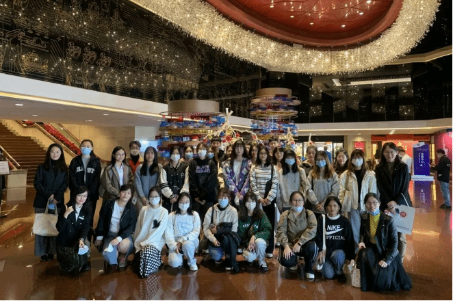 师生一行抵达中国大酒店后,受到了岭南集团人力资源部的邱总以及酒店管理人员的热情接待。合影过后,大家在酒店管理人员的带领下前往宴会厅。