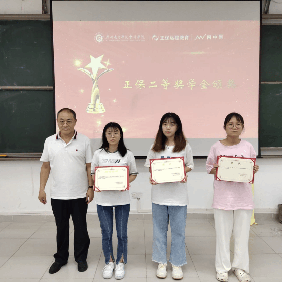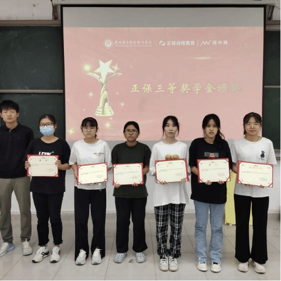 9月23日下午,williamhill中国官网在5教105教室召开了2021级正保班奖学金颁奖典礼。为推动正保产业学院班健康发展,鼓励本学院学生刻苦学习、积极参加正保举行的各种活动,企业特设立正保奖学金。经过严格的评选,2021级共有11名同学获得了正保奖学金,陈嘉琳同学荣获一等学业奖学金,郑彦玲、蔡依林、叶乐怡同学荣获二等学业奖学金,郑绮琳、黄婷婷、陈蕊、蒋嵋、姚淑玲、冼子蔚荣获三等学业奖学金,陈嘉琳同学荣获文体艺术之星专项奖学金,胡春桃同学荣获社会工作之星以及知识技能之星两项专项奖学金。卫建国院长、正保集团王哲经理、以及陈黛洁经理分别为获奖同学颁发奖状并合影留念。