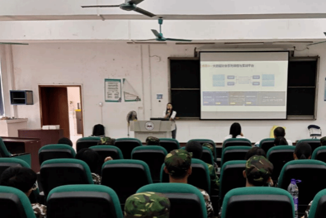 随后由企业代表王哲经理上台致辞,他表示正保智能会计产业学院正保班是校企合作的创新举措,也是积极响应新产业企业对新型财务人才的需求。希望经过这种产教深度融合、校企创新合作的形式,能够培养大批有理想、有本领、有担当的高素质专业人才。最后王哲经理表示非常欢迎各位同学选择加入正保班的大家庭。最后由陈黛洁经理正式开始对大一同学们进行正保班的招生宣讲,针对正保班的特色与优势展开了详细的介绍。