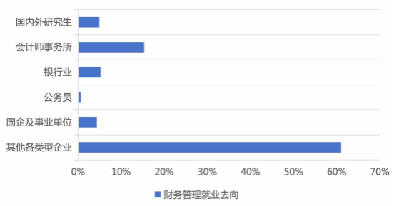 财务管理专业毕业生普遍收到用人单位的欢迎,用人单位对毕业生就业满意度达96%以上。本专业毕业生中已有20多人担任了企业或银行中高层管理人员(分行行长、企业高管、部门负责人)